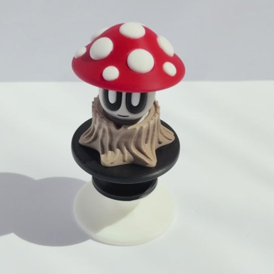 A whimsical collectible with a spinning red cap! Fun to fidget with, display, or gift